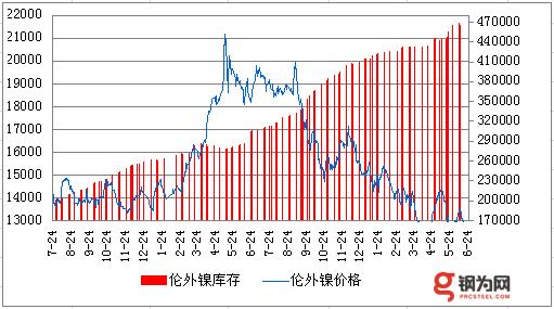 6月24日LME電鎳收12740跌110,庫存增750至459438噸,電銅漲18收5770,滬期鎳1509收96390漲1540。